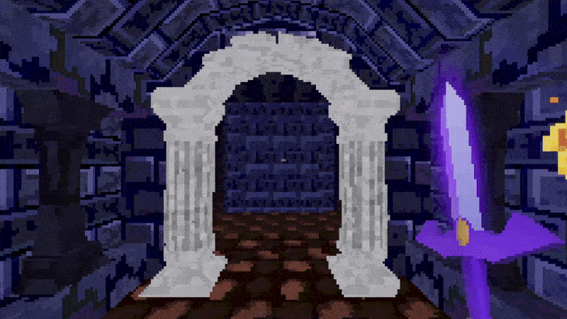 This is the spinning-wall statue. A regular enough looking wall that, when the player is in proximity, spins to reveal a sword wielding statue that strikes you quickly, before turning back into hiding. The model is still very much a work-in-progress, but the idea is implemented!